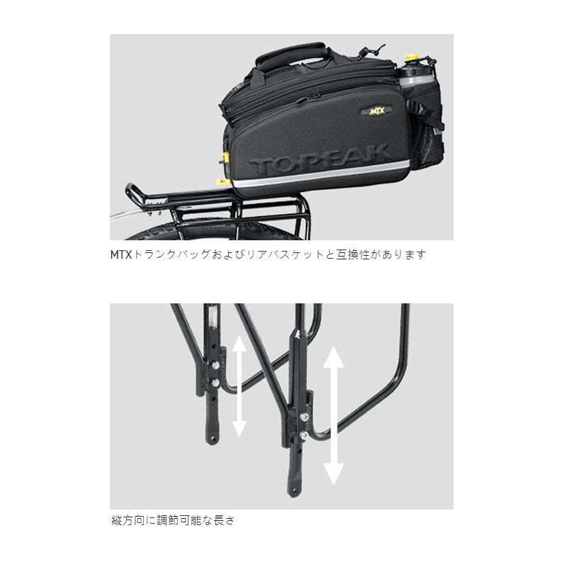 ●MT×QuickTrack(R)プレートは、Topeak MT×TrunkBag、MT×リアバスケット、および市場に出回っている他のほとんどのラックパックやパニエと互換性があります。