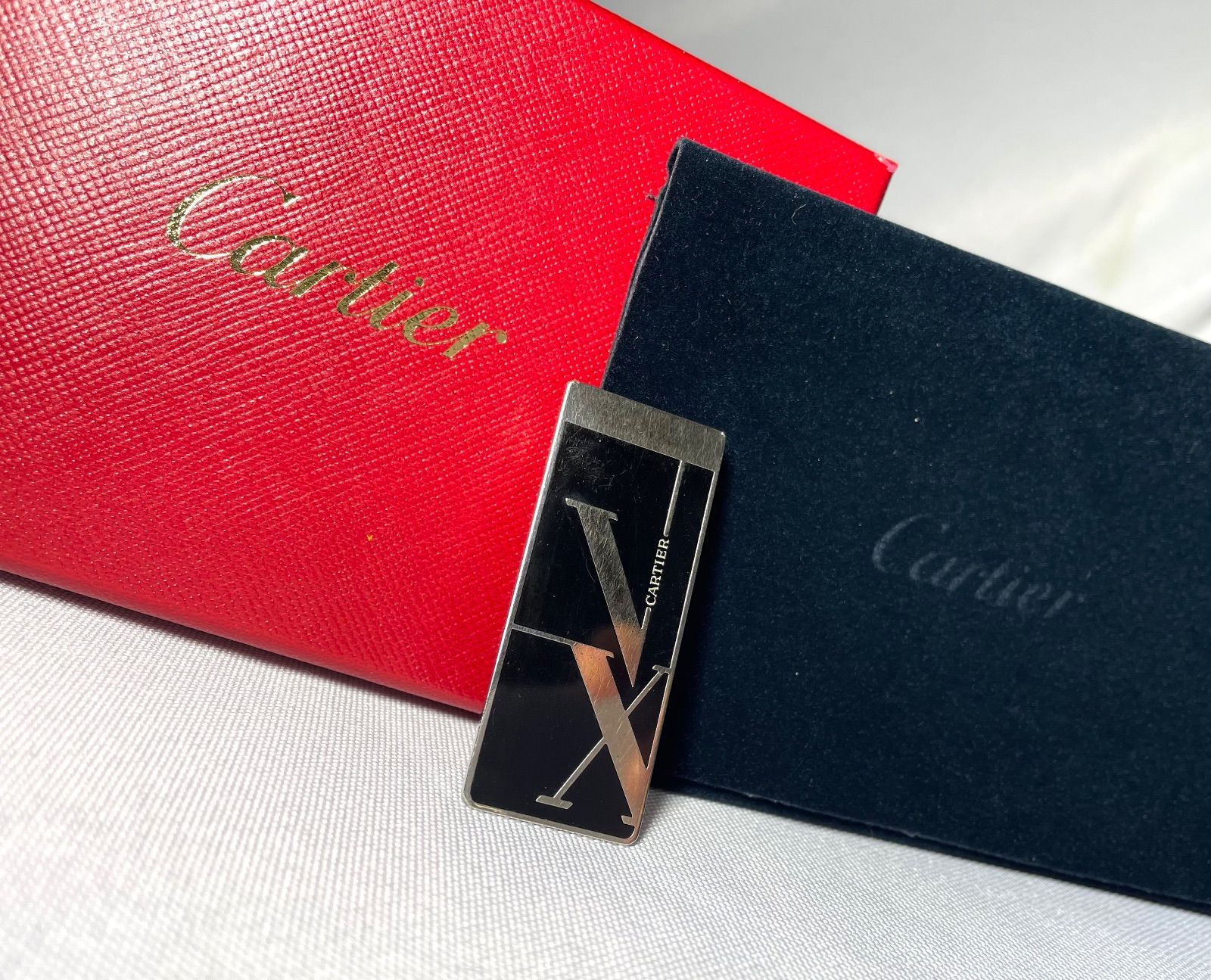 Cartier ローマ数字デザイン ブラック & メタリックシルバーマネークリップです