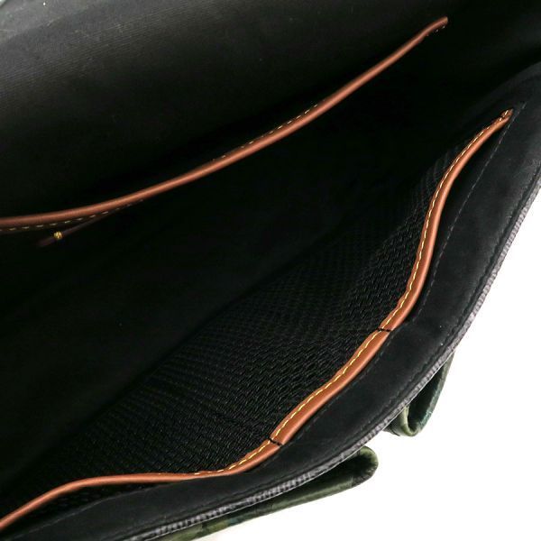コーチのリーグメッセンジャーバッグウィズカモプリントのご紹介です!付属のロゴチャームは欠品しております。本体は定番人気のシグネチャー柄で、フラップ部分は迷彩柄に切り替わっています。開閉はフラップ先の左右のホック使用。フラップを上げると、正面にポケット2つあり。中はメッシュのポケット2つ、メッシュのペン挿し1つ、ポケット1つ、Dリング1つあり。背面にはポケット1つあり。ショルダー部分はバックルで長さ調整可。☆状態は、本体の型崩れ、表面のスレ・薄汚れ、角や縁のスレ、底のスレ・小傷、金具部分の小傷・くすみ、フラップ内側や中のシワ・薄汚れが見受けられますが、まだまだ綺麗にお使いいただけますよ!カジュアルな装いにマッチします!