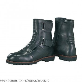撥水効果のあるオイルドレザー採用ブーツ。ノンファスナータイプなので太さが制限されず、足首周りの調節が容易。ビブラムタイプのブロック底を採用し、足のふんばりに効果大。アキレス腱部に10mm厚のウレタン入りシャーリングを装備し運動性・操作性をUP。内クルブシに5mm厚のウレタンパッドを内蔵し、安全性をUP。カップインソールを内装しており足裏のフィット感が抜群。