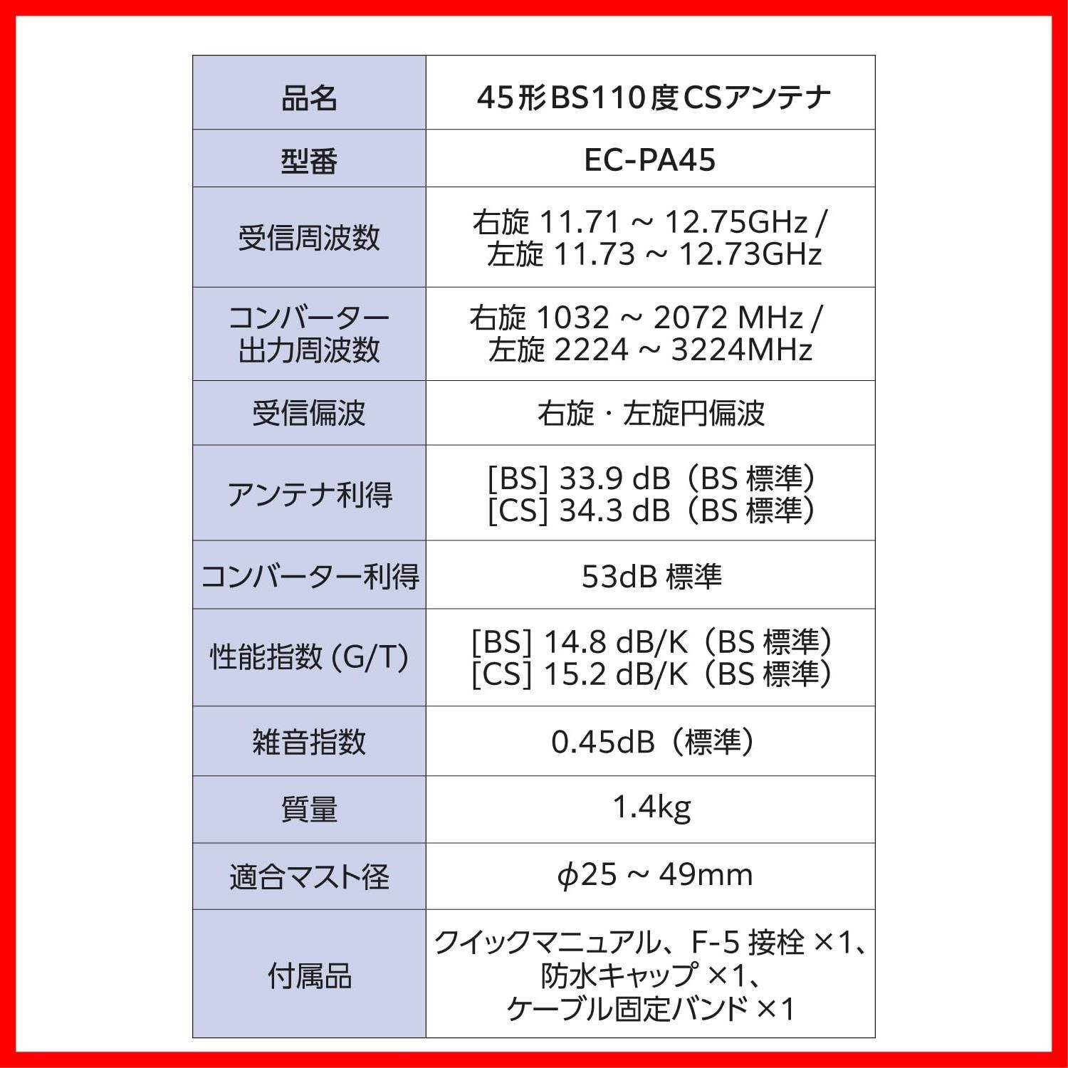 数量 4 K 2 45形 8 3224 MHz 対応 BS 110度CSアンテナセット 簡単に組み立て bsアンテナ EC PA 45 DXアンテナ