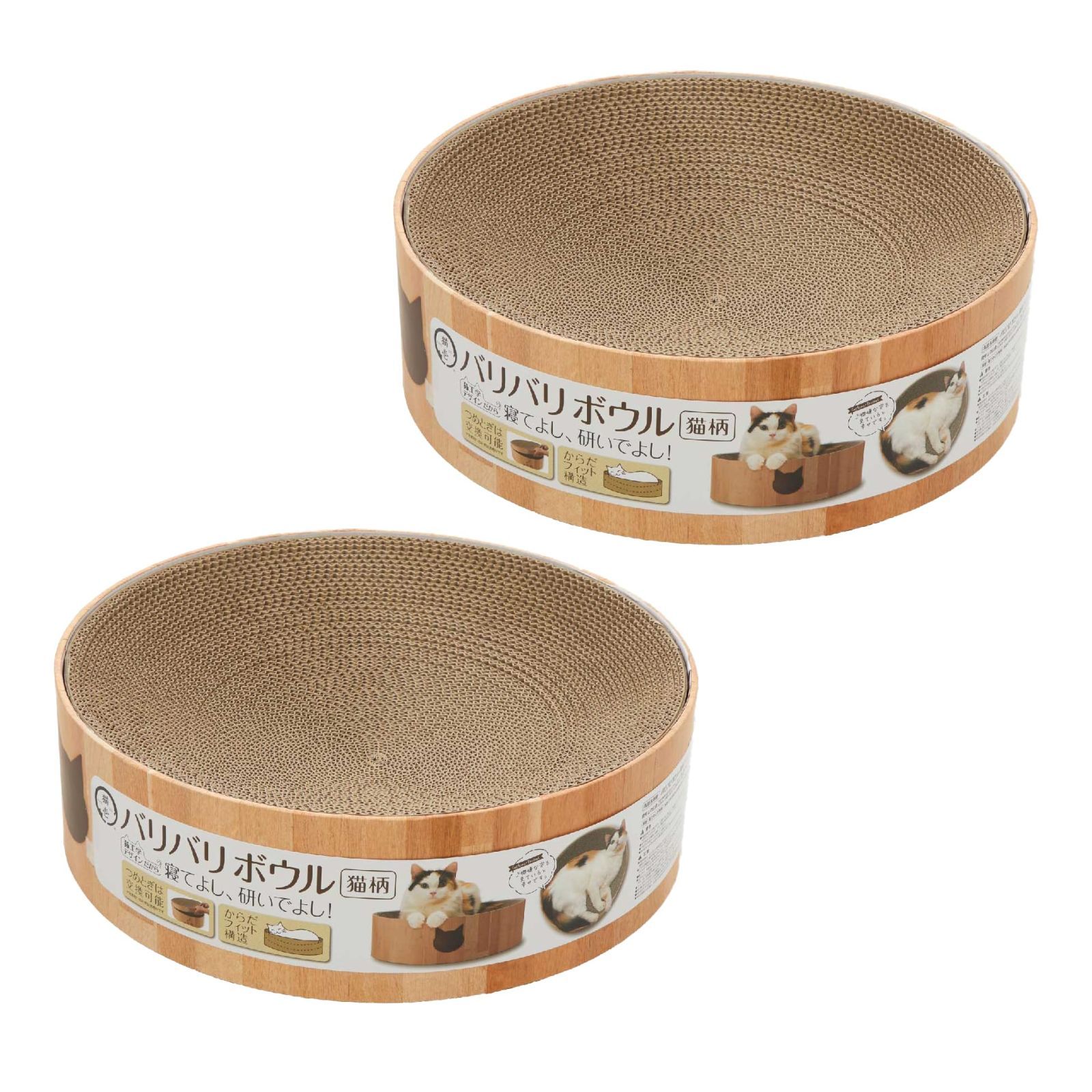 Size:e) レギュラー2個_Color:a) ライトブラウン本体 猫壱 爪とぎ バリバリボウル 猫柄 ライトブラウン レギュラー 2個セット