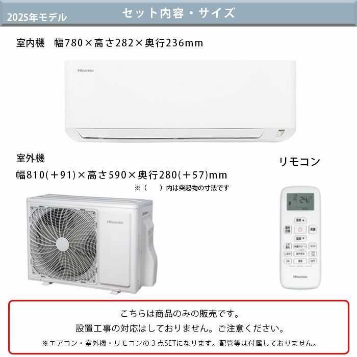 * 室内機サイズ: 幅780mm×高さ282mm×奥行236mm