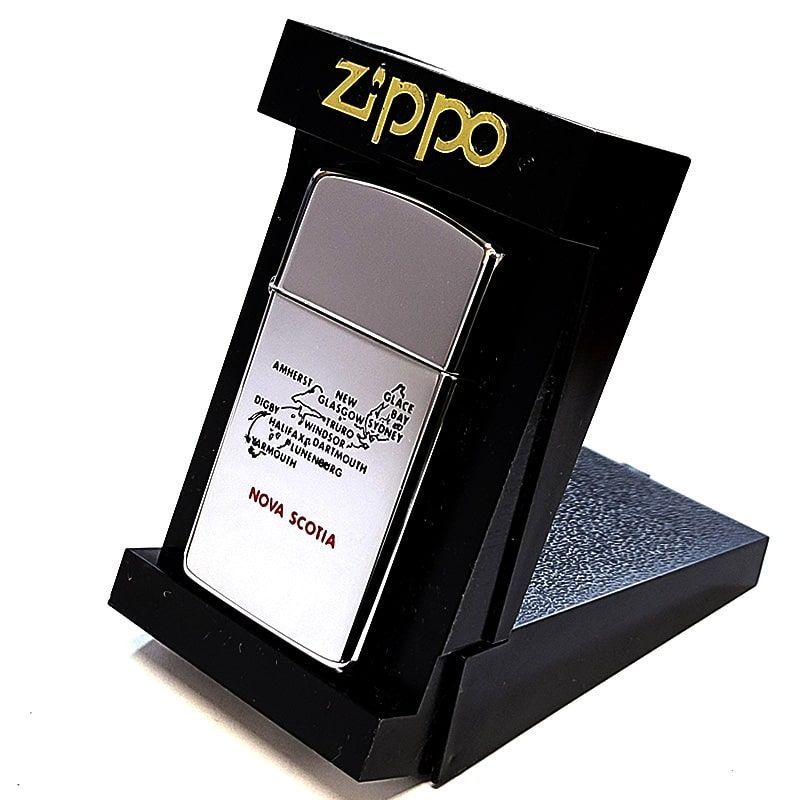 ZIPPO スリム カナダ製 1991年製 ノバスコシア州 地図 廃盤 ジッポ ライター 鏡面ポリッシュ オンタリオ製 珍しい 絶版 ビンテージ かっこいい シルバー ヴィンテージ おしゃれ メンズ プレゼント ギフト