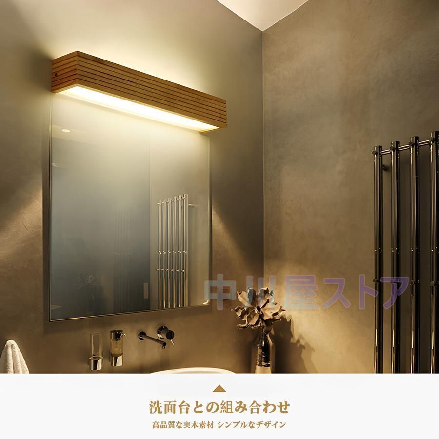 ブラケットライト LED照明 壁掛けライト 洗面鏡 実木長方形 北欧 ミラーランプ 化粧台 お手洗い 室内灯 工事必要 ウォールライト 35 cm白色光 暖色光