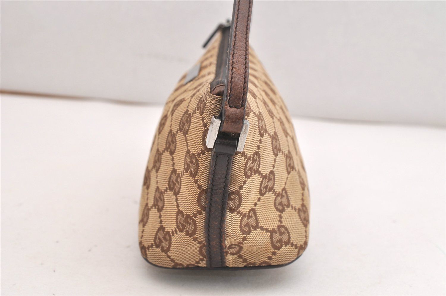 GUCCI グッチ ヴィンテージ ハンドバッグポーチ 財布 GGキャンバス レザー 07198 ブラウン 3980 N