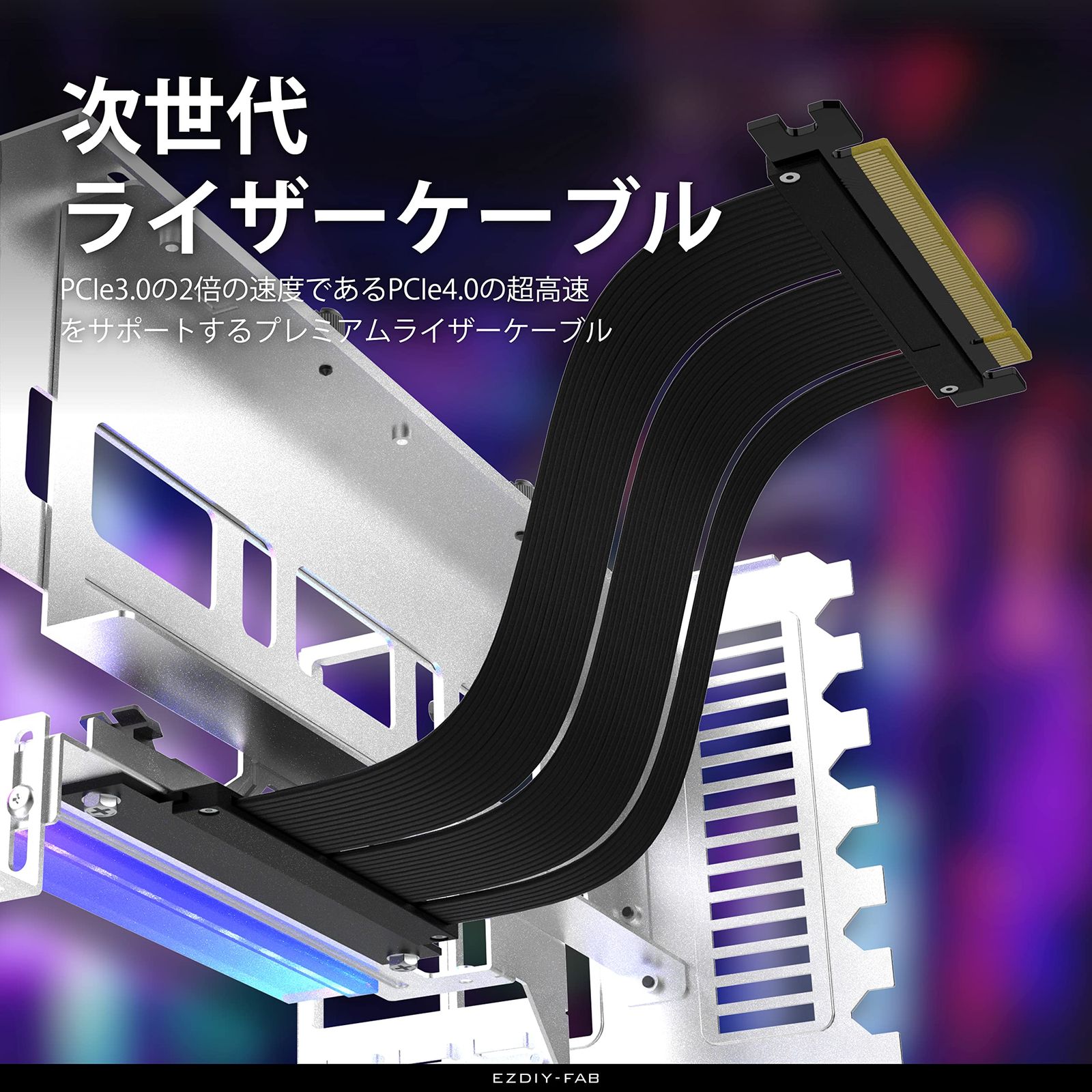 EZDIY FAB 新しいRGB 垂直 PCIe 4 0 GPUブラケット 垂直グラフィックカードホルダー ARGB 5 V 3ピンLEDライト同期 X 16 Gen ライザーケーブル90度直角17 cm ホワイトキット