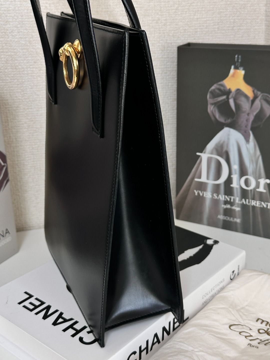 Cartier カルティエ パンテール レオパード カーフレザー ブラック トートバッグ ショルダーバッグ