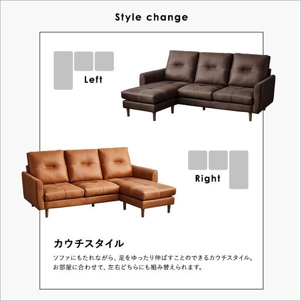レイアウト自由 3人掛け レザーファブリック カウチソファ Marcell-マーセル-