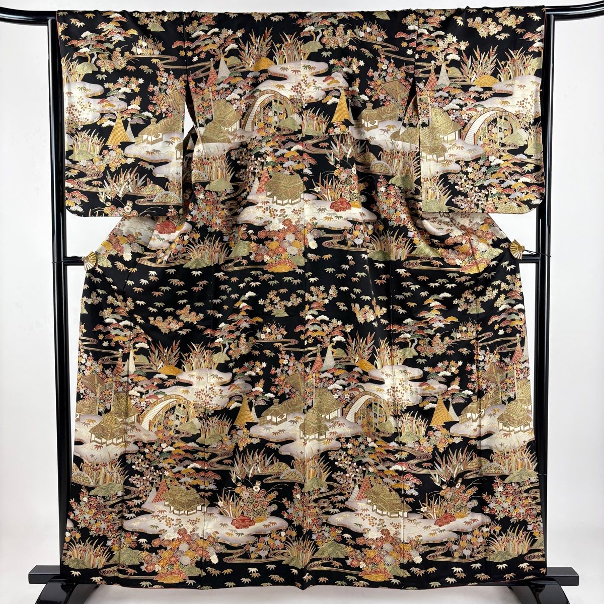 訪問着 身丈160 cm 裄丈66 M 袷 胴抜き 松竹梅 家屋 金糸 金彩 黒 正絹