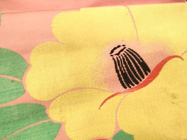 平和屋着物 アンティーク 大正ロマン 九寸名古屋帯 唐織 椿 正絹 cm