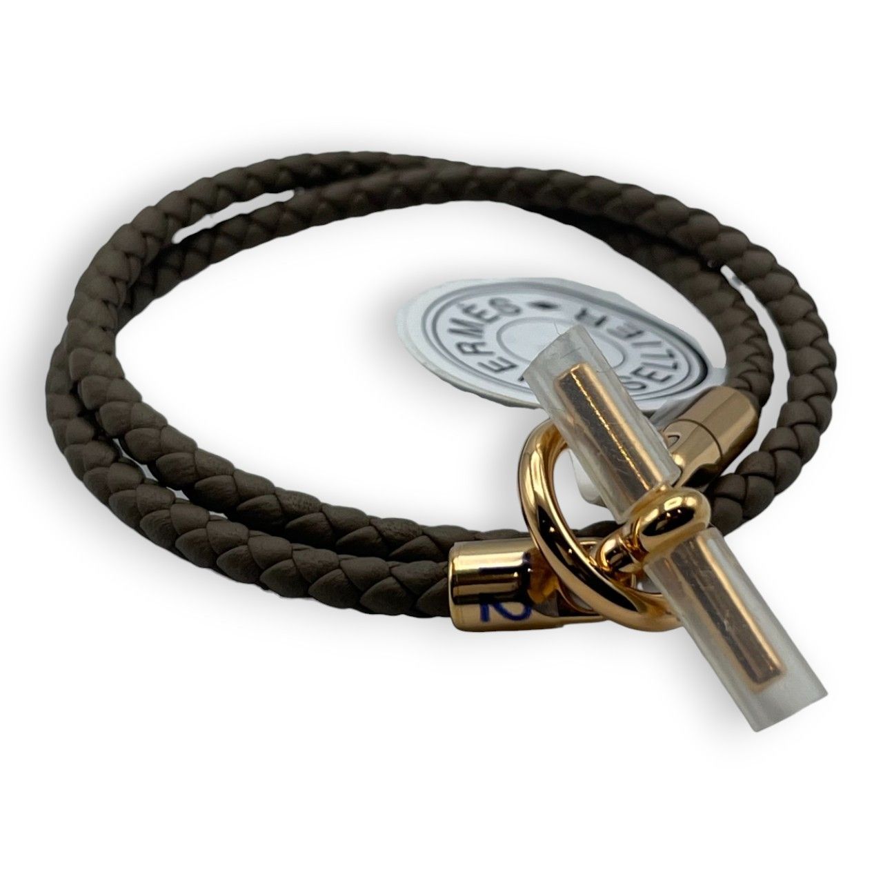 エルメス レザーブレスレット グレナン ドゥブルトゥール トレッセ T 2 15.5 cm エトゥープ ヴォー スウィフト ゴールデンローズ金具