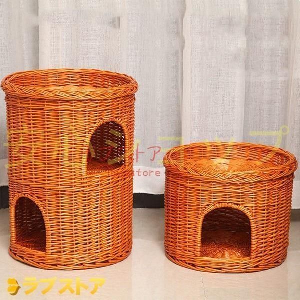 柳編みハウス 二層 犬 猫カゴ ペットベッド ラタン ペット用 細工品 ねこ 室内 簡単に洗濯 涼しい 無害 ねこ爪とぎ 夏