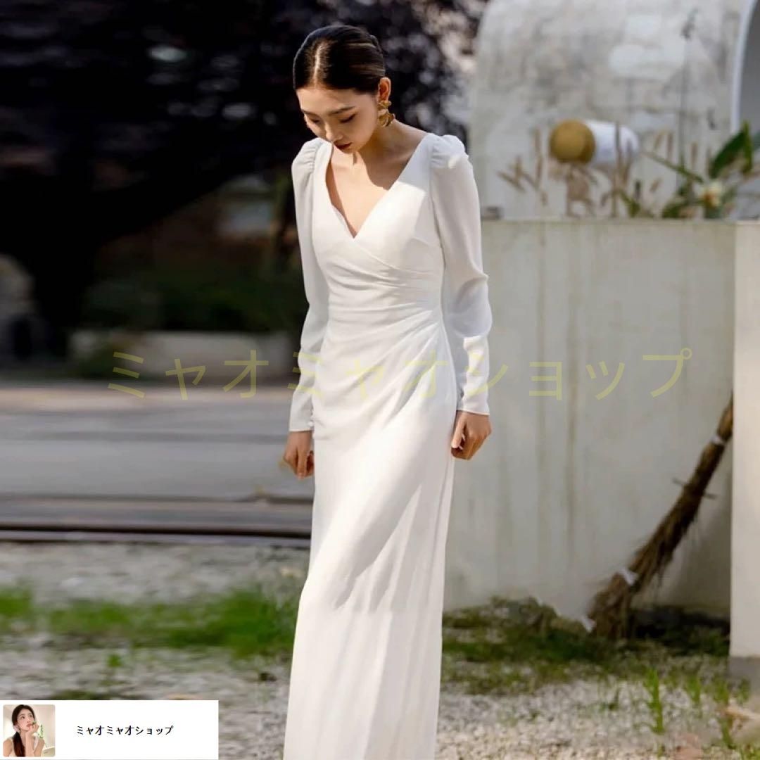 レディースファッション 商品 上質素材ウェディングロングドレス 美しい刺繍とシルエット結婚式用