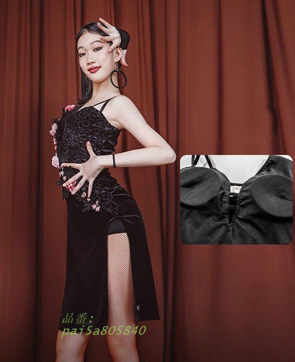 ラテン 衣装 ラテンドレス 社交ダンス衣装 ダンスウエア 黒 豪華なドレス チャチャ サンバ pai 5 a 805840