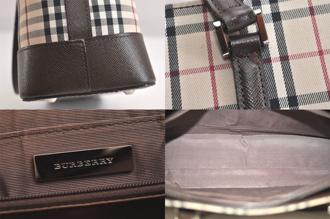 バーバリー ヴィンテージ ノバチェック柄 キャンバス レザー ハンドバッグ 財布 ベージュ 3908 N