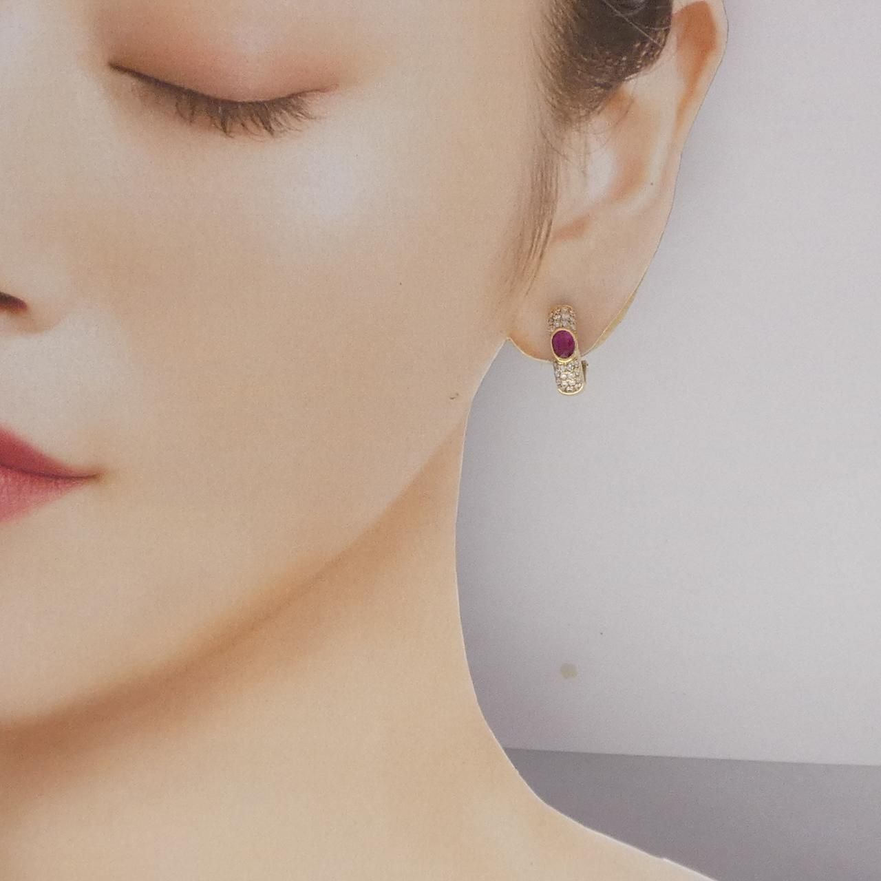K 18 YG ルビー ピアス 0.80 CT