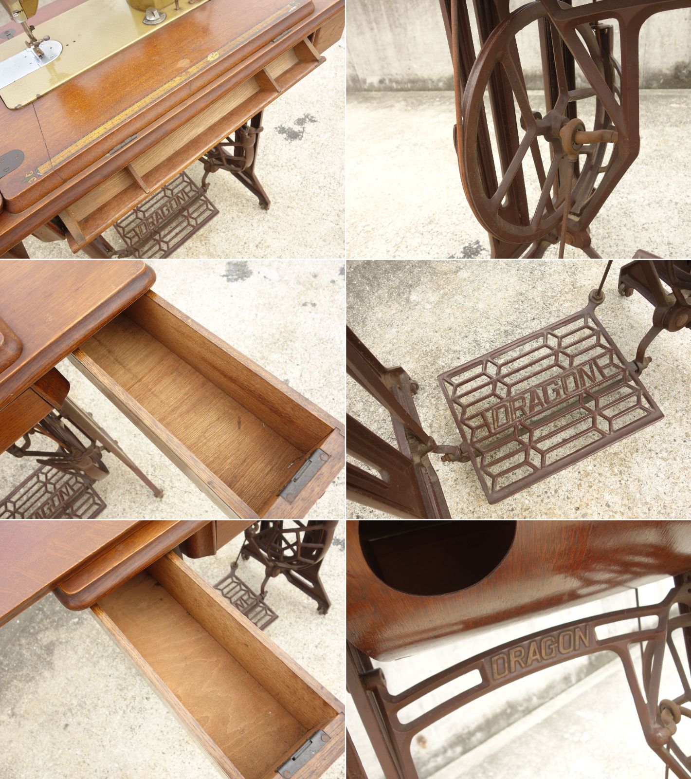 K ドラゴン 足踏み ミシン 台付き 垂直釜 38739