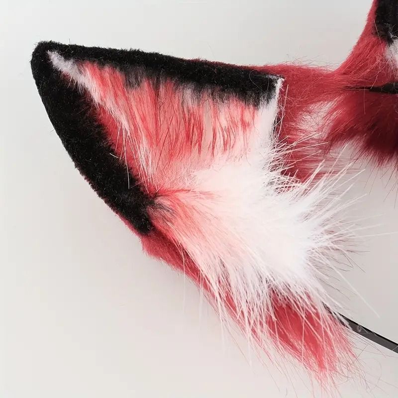 フェイクファー 猫耳 ハロウィーン 仮装 パーティー 愛らしい ふわふわ コスプレ 猫 赤 黒 鮮やか カラフル ポリエステル ヘッドバンド テール