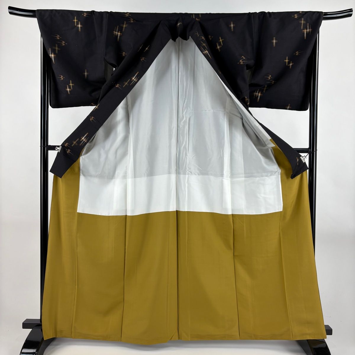 紬 身丈165 cm 裄丈69 L 袷 燕 十字絣 黒 正絹