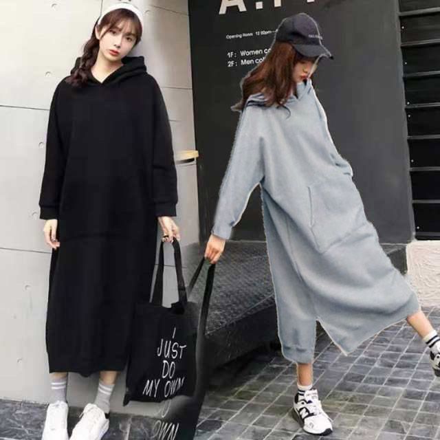 裏起毛&サイドスリット入り!ビッグシルエットパーカーワンピース。