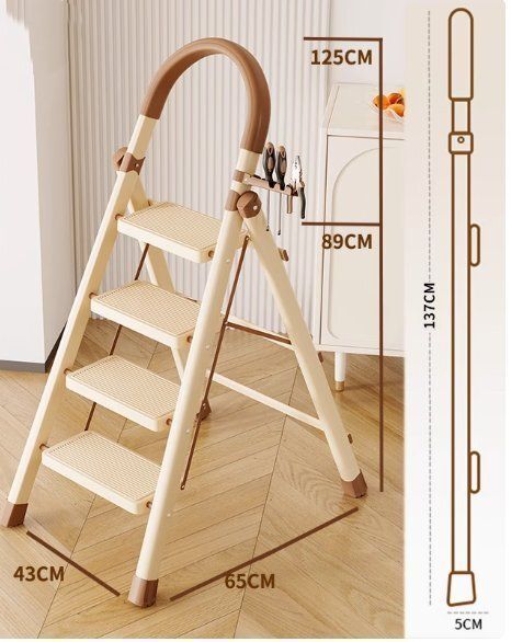 家用の折りたたみはしご 加厚クリーム色 multifunctional 人字形はしご 4段はしご 携帯 滑り止め 高い場所に登るための階段