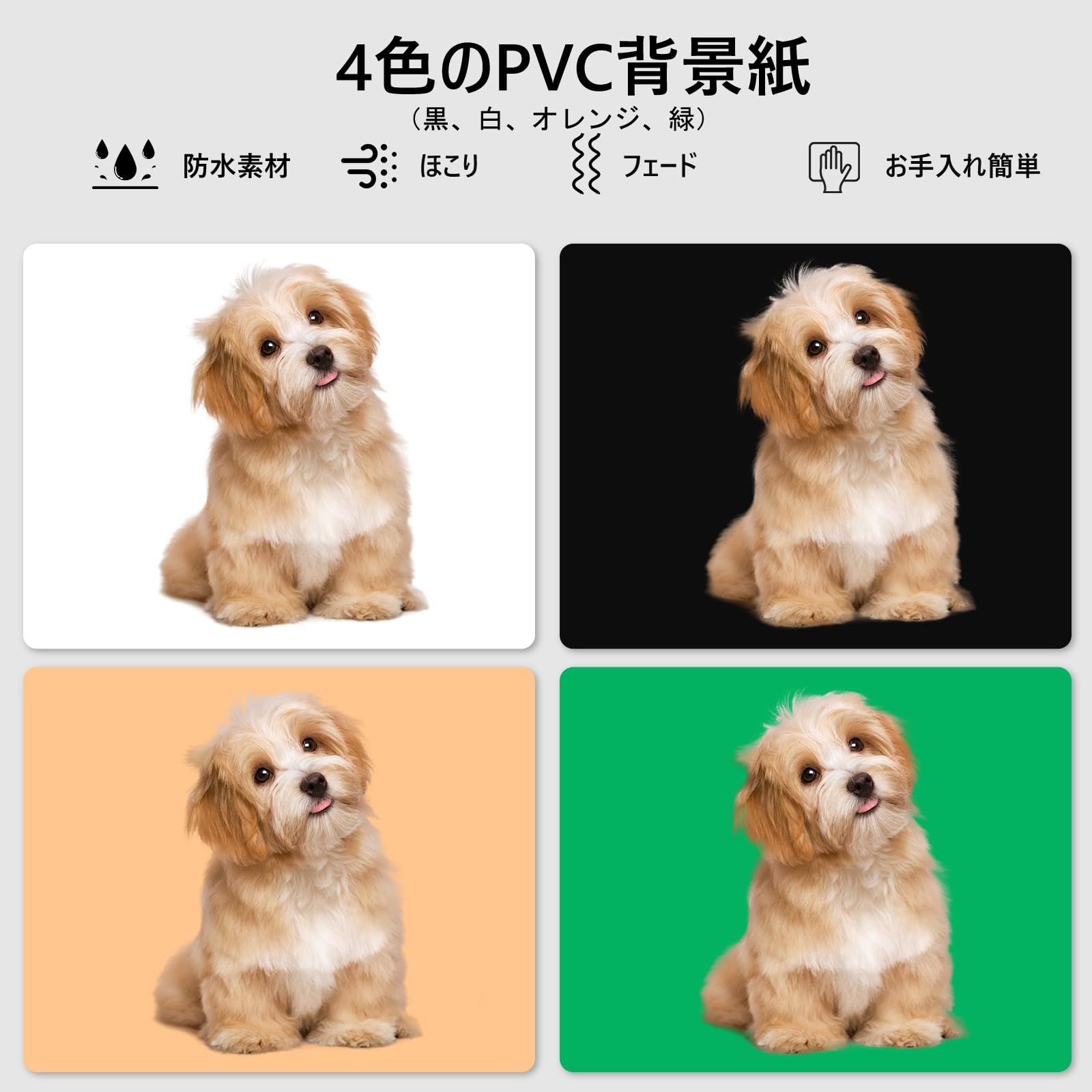 【4枚のPVC背景布】取り外し可能な背景布(黒と白、橙と緑)は、さまざまな撮影シーンやテーマのニーズに応え、より創造的な空間を提供します。