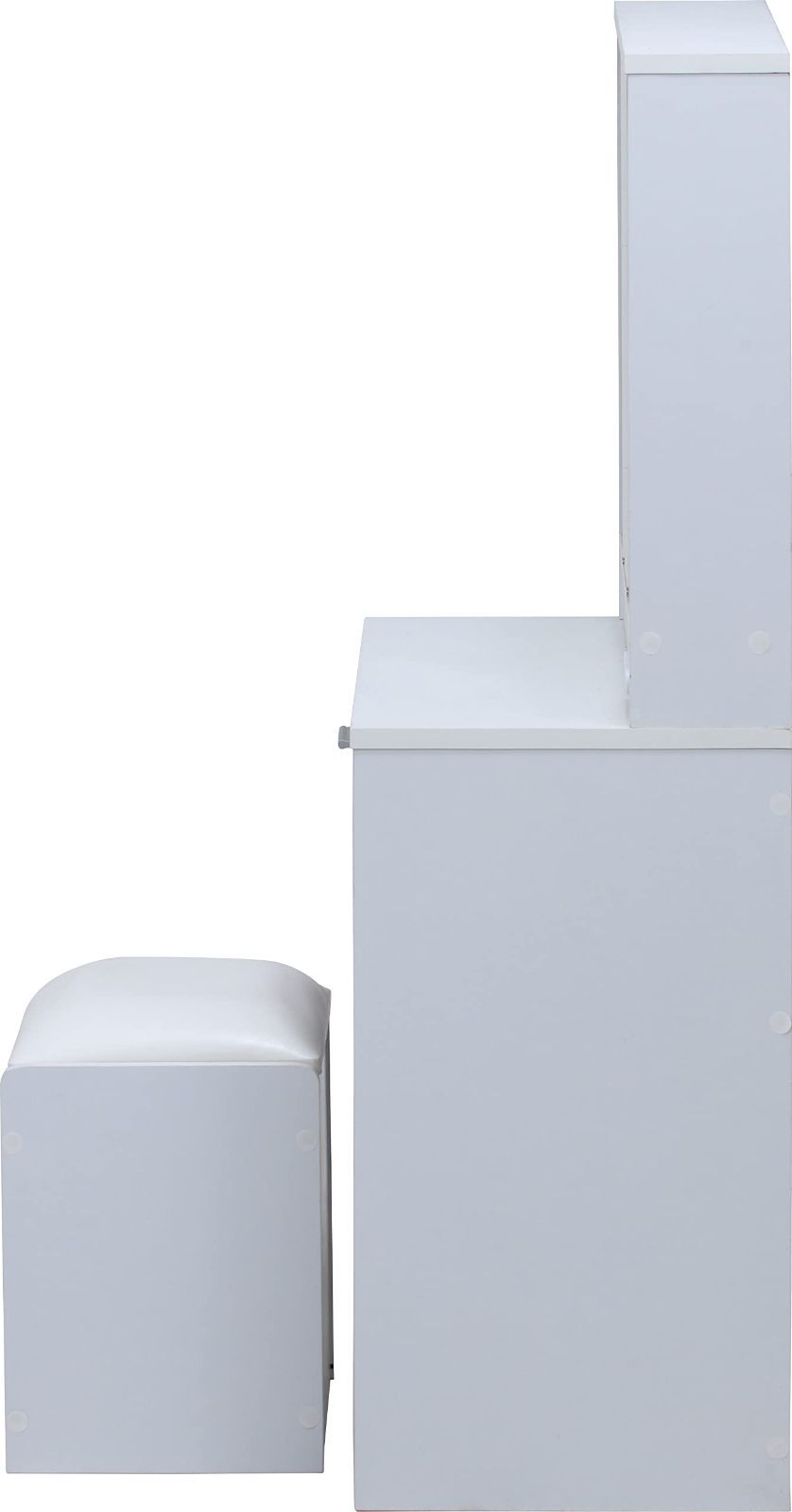 不二貿易 ドレッサー 鏡台 幅60×奥行39×高さ130cm ホワイト 三面鏡 LEDライト付 スツール収納 99546