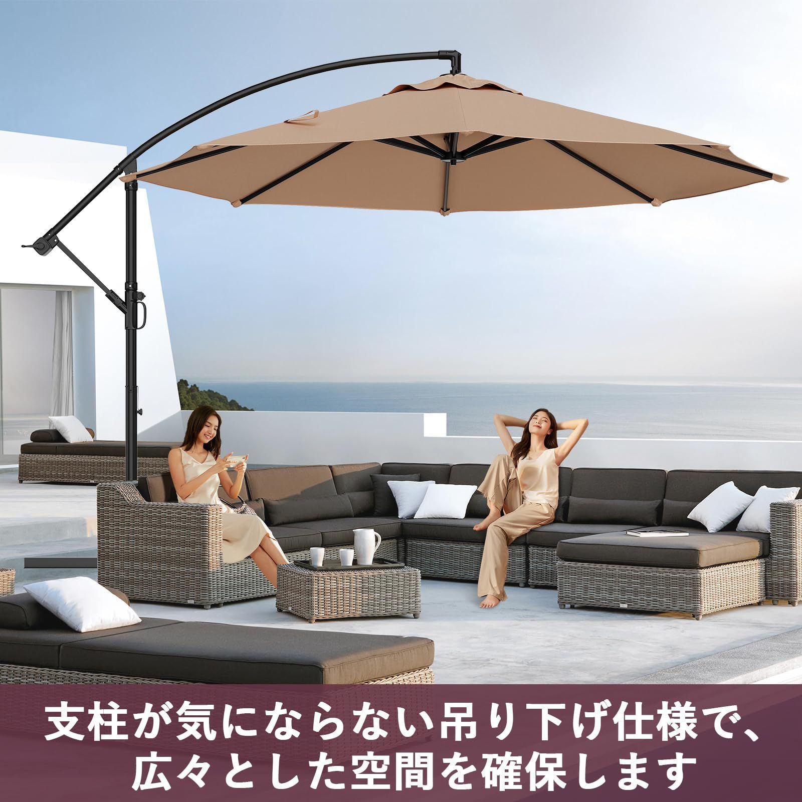 Litake パラソル ガーデンパラソル 300 cm 大型 ハンギングパラソル 風に強い 360°回転 角度調節 日よけ 撥水 UV加工 ビーチパラソル 庭 カフェ テラス 日傘 アウトドア 商業利用