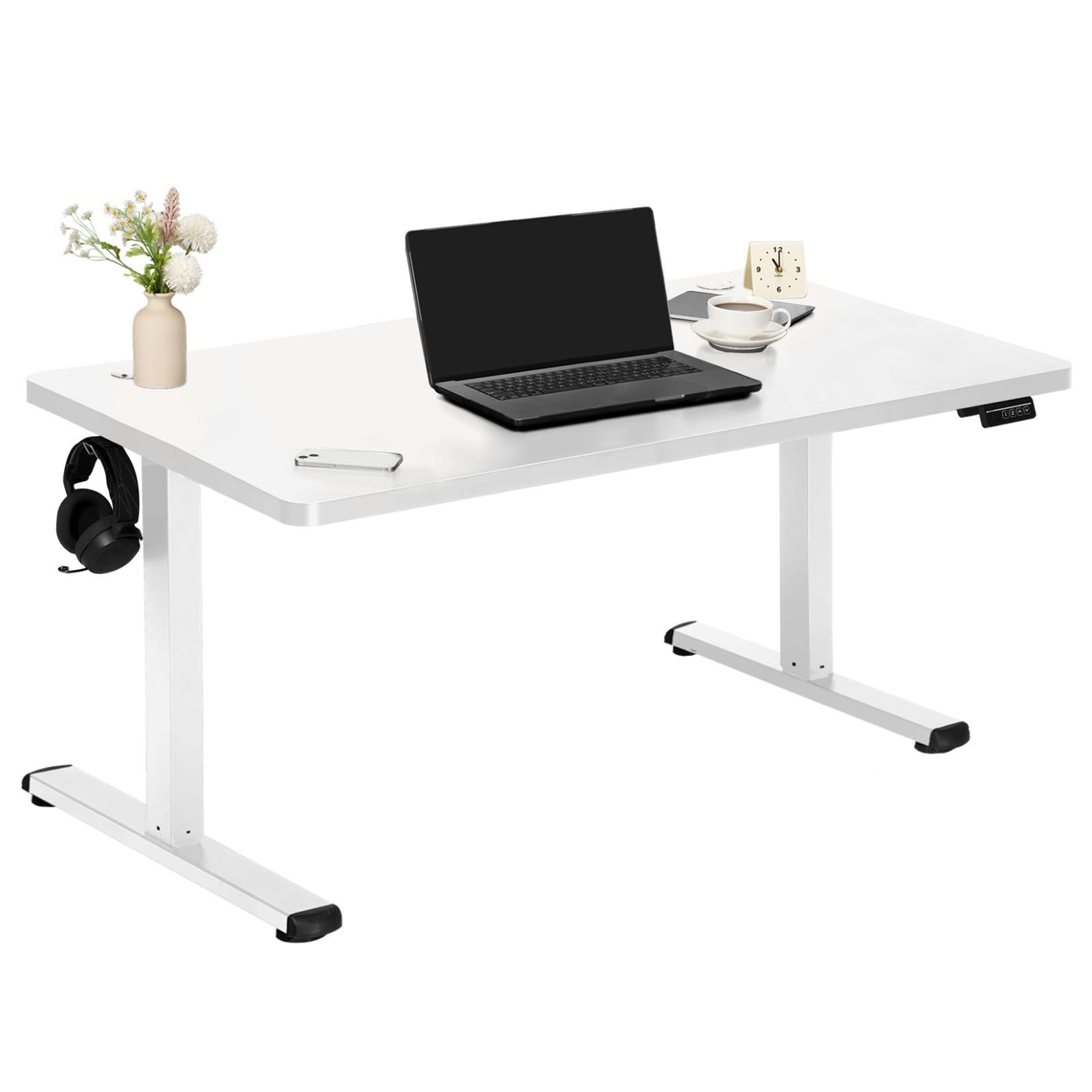 Avocahom 電動式スタンディングデスク 【幅120×奥行60 メモリー機能付き】 昇降デスク 高さ調節デスク パソコンデスク 人間工学 ゲーミングデスク セット 無段階昇降 耐荷重70kg 人間工学 おしゃれ 静音 速い 安定 組立簡単 収納フック付 (ホワイト 幅120cm)