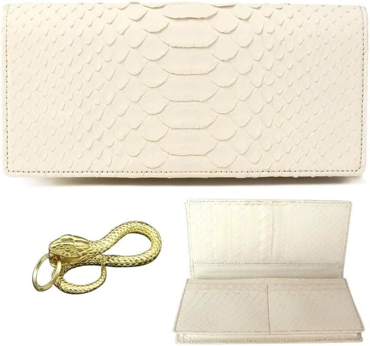 SakuraZen 白蛇 無双 長財布 蛇革 金運財布 全面 蛇革財布 ホワイトパイソン レザー メンズ エキゾチック レザーを使用した 本蛇革 熟練革職人のハンドメイド品 黄金蛇チャーム