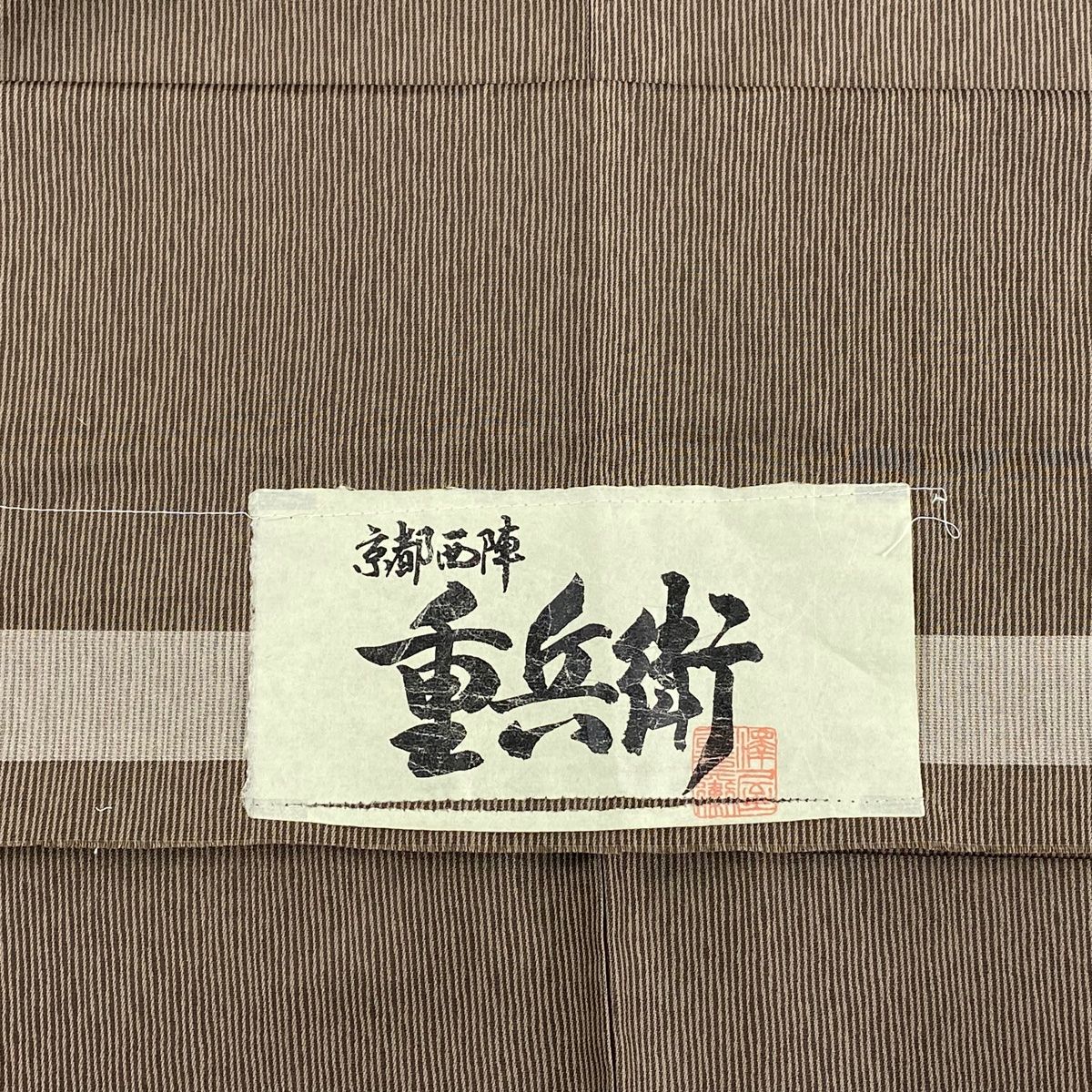 お召 身丈158 cm 裄丈67 M 単衣 重兵衛 ますいわ屋 落款 証紙 縞 茶色 正絹