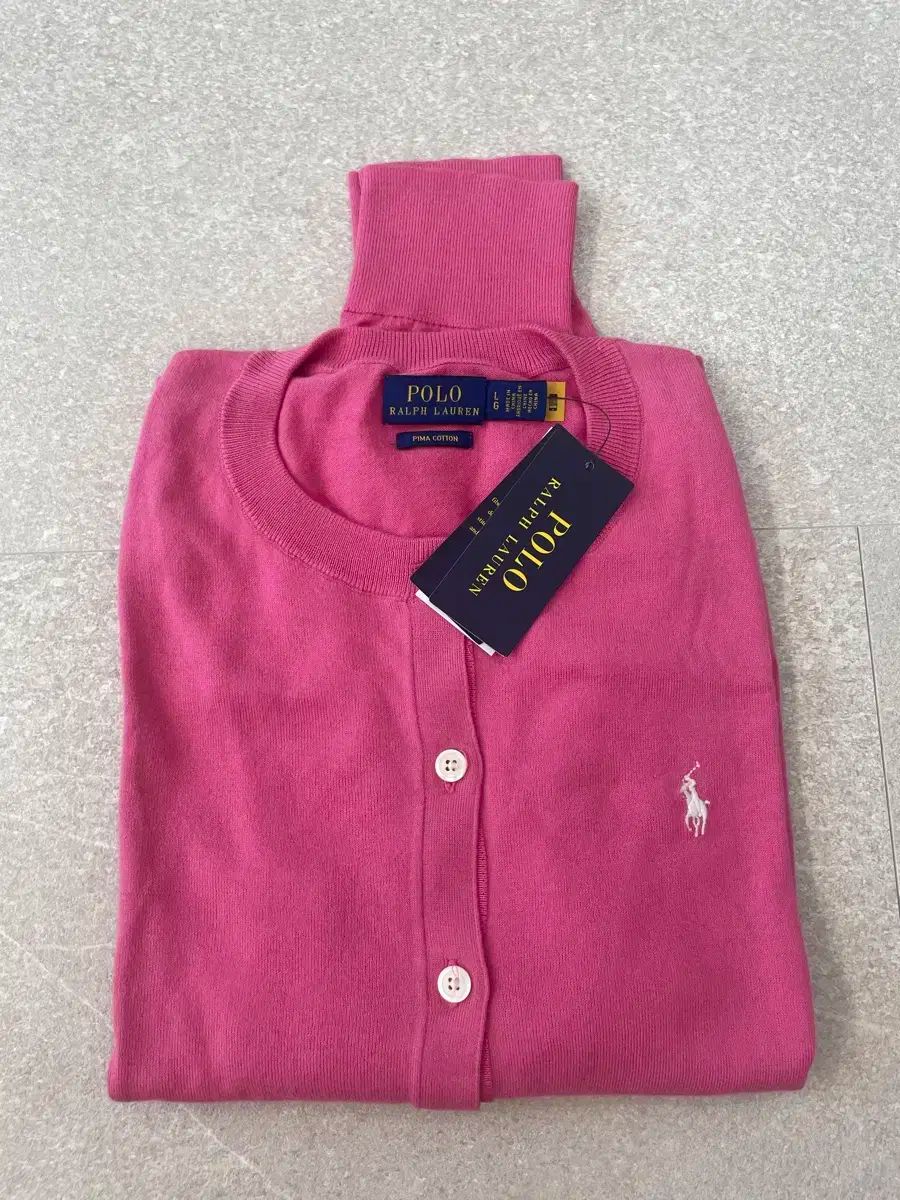 女性用新品ポロラルフローレンカーディガンサイズL 明るいホットピンクカラーに白いロゴ刺繍がアクセントになっています。タグ付きの付き新品なので、お得に手に入れましょう!