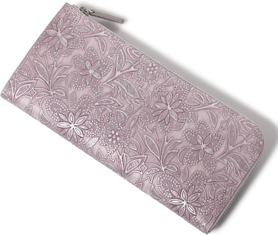 から発送 アルカン 長財布 L字ファスナー 本革 レディース ク 1416-660 薄型 花柄 パール 型押し エンボス 牛革 レザー 73 ラベンダー
