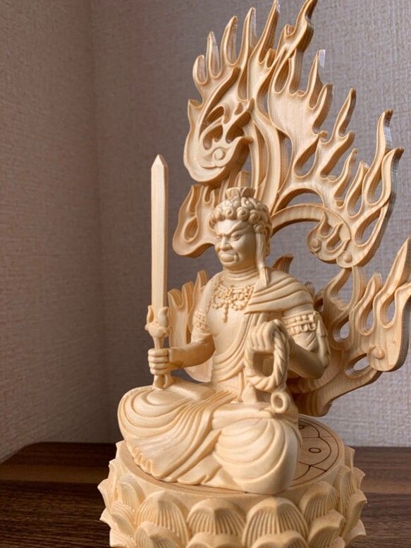 仏像 不動明王 不動明王像 不動尊 大日大聖不動明王 檜木 木彫 仏具 約 高30 cm×幅12 cm×奥行12 cm