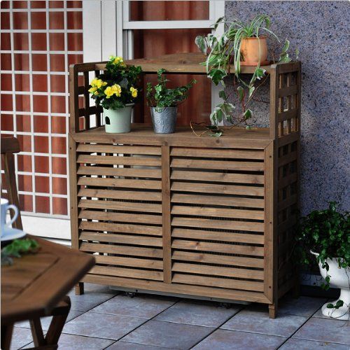 ガーデンマスター バルコニー ブラウン ベランダ エアコンガード 天然木杉材 幅95×奥行39×高さ111 cm ACGN-02 棚付 エアコン室外機カバー 山善