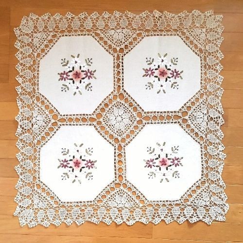 エストニア輸入 テーブルクロス 約83 83 cm 花柄 リボン 刺繍 コットン ベージュ