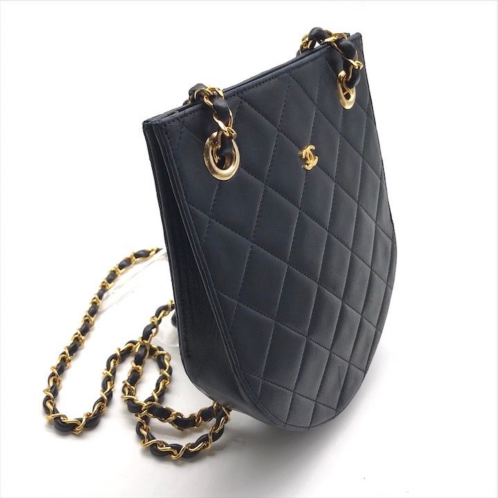 CHANEL シャネル ココマーク ラムスキン レザー マトラッセ チェーン ショルダー バッグ レディース 鞄 かばん ネイビー a 10450
